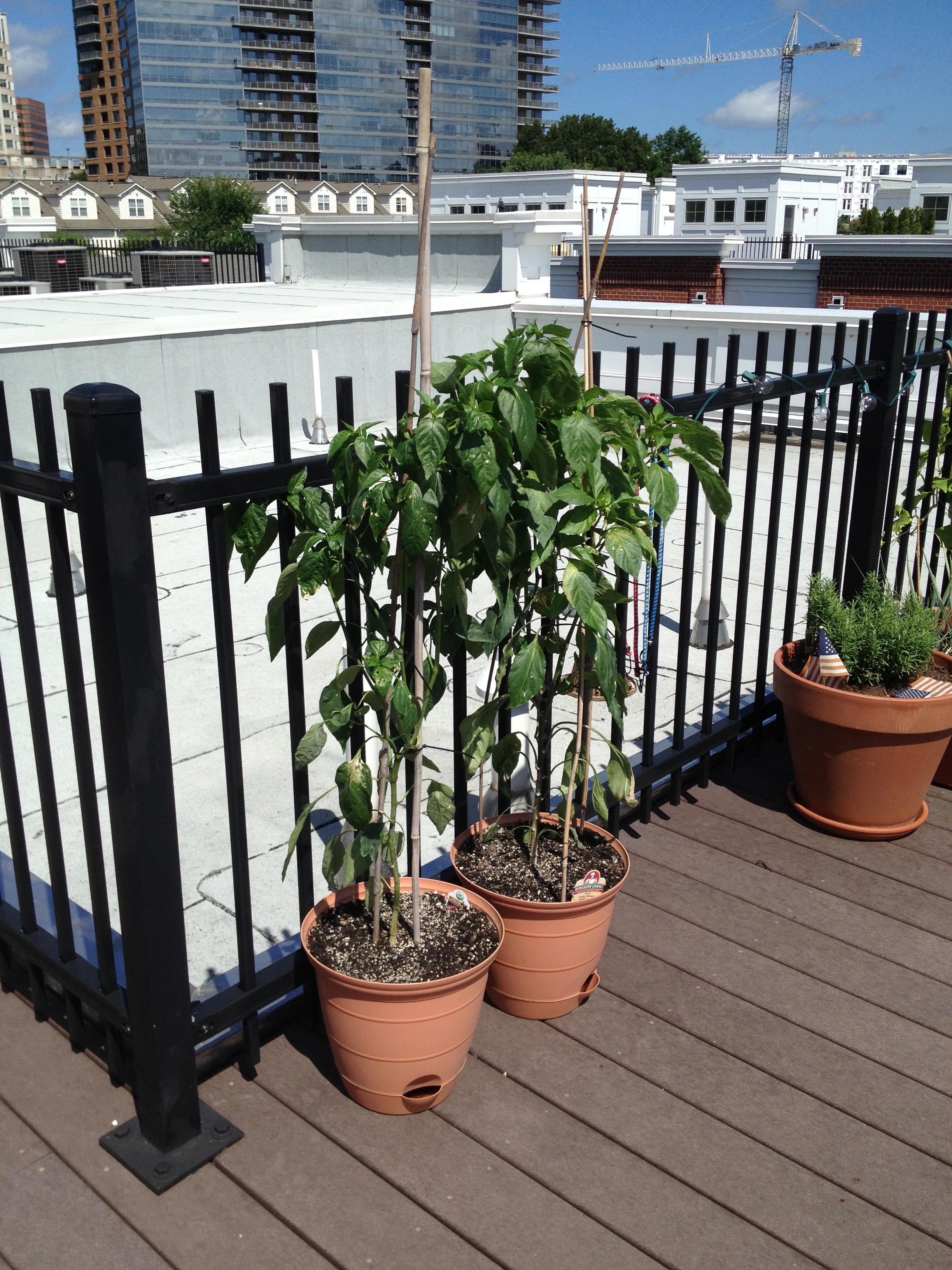 ShmErin’s plants, after being staked. I have since bungee corded them to the fence.